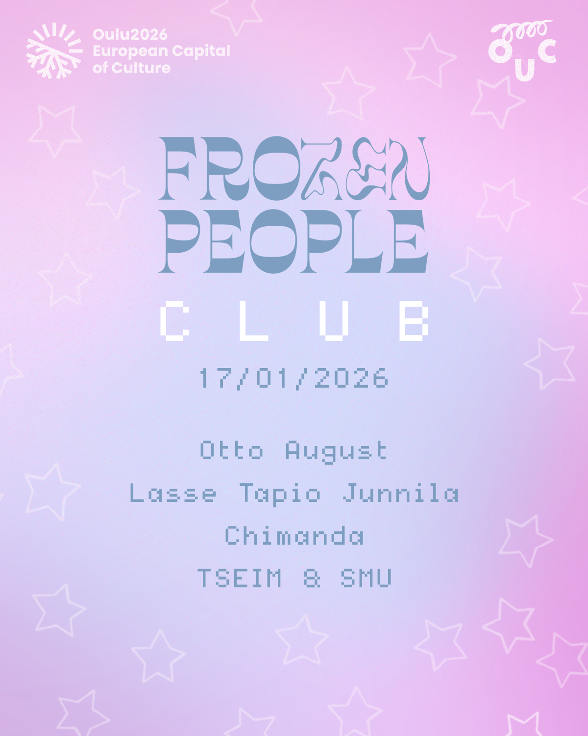 Join us on Saturday, January 17, to celebrate Oulu’s year as the European Capital of Culture at the Frozen People Club. Expect honest, no-frills raving in Oulu’s very own Berlin.